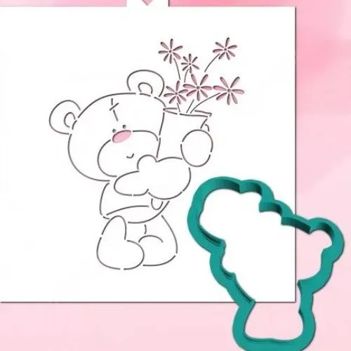 Трафарет+форма для пряника, печенья, «Мишка тедди с букетом» в комплекте 2 изделия: трафарет и форма