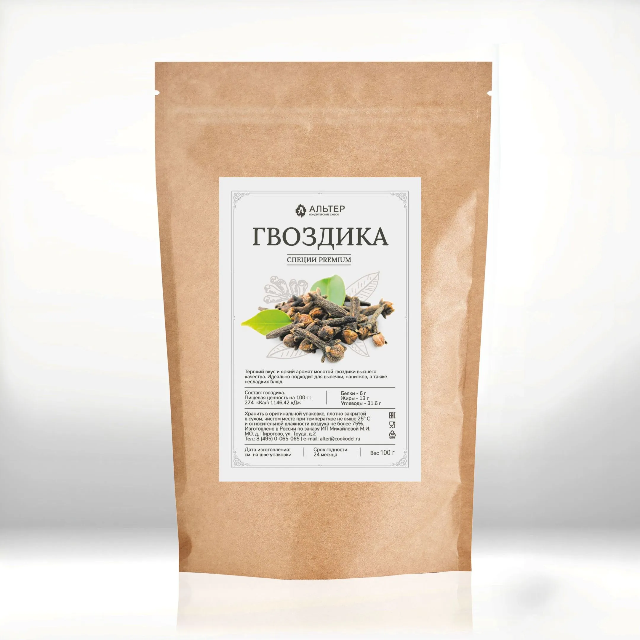 Терпкий вкус и яркий аромат молотой гвоздики высшего качества. Идеально подходит для выпечки, напитков и несладких блюд.