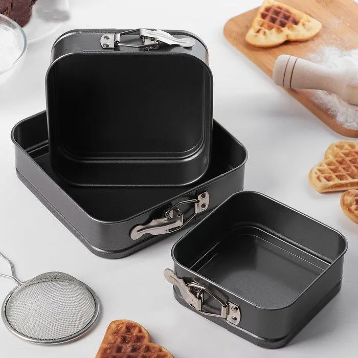 Набор форм для выпечки разъемных "Элин. Квадрат", 3 шт: 18/16/14 см, антипригарное покрытие