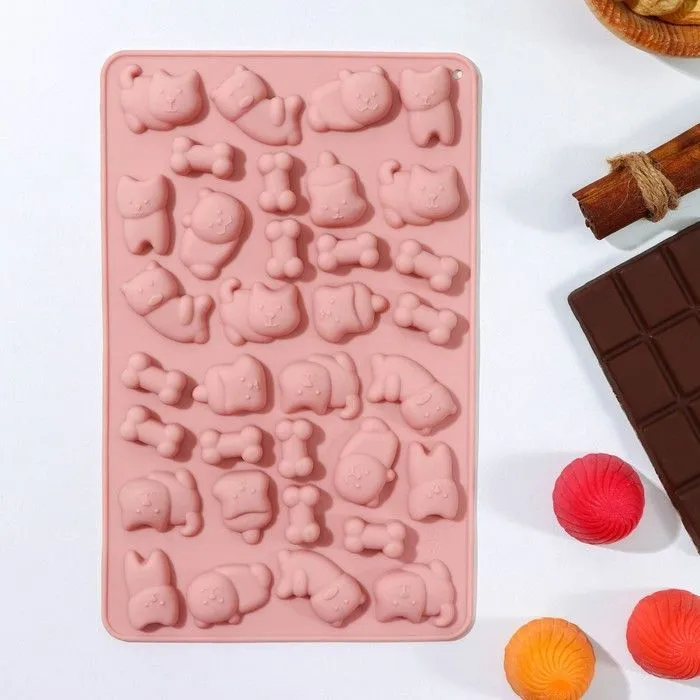 Форма для льда и кондитерских украшений "Домашние питомцы", 19,5х12,5х1 см, 34 ячейки