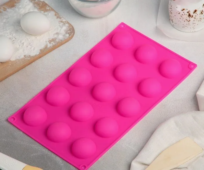 Форма силиконовая Полусфера 15 ячеек, 29х17х2,2 см, d=3,7 см, цвет МИКС