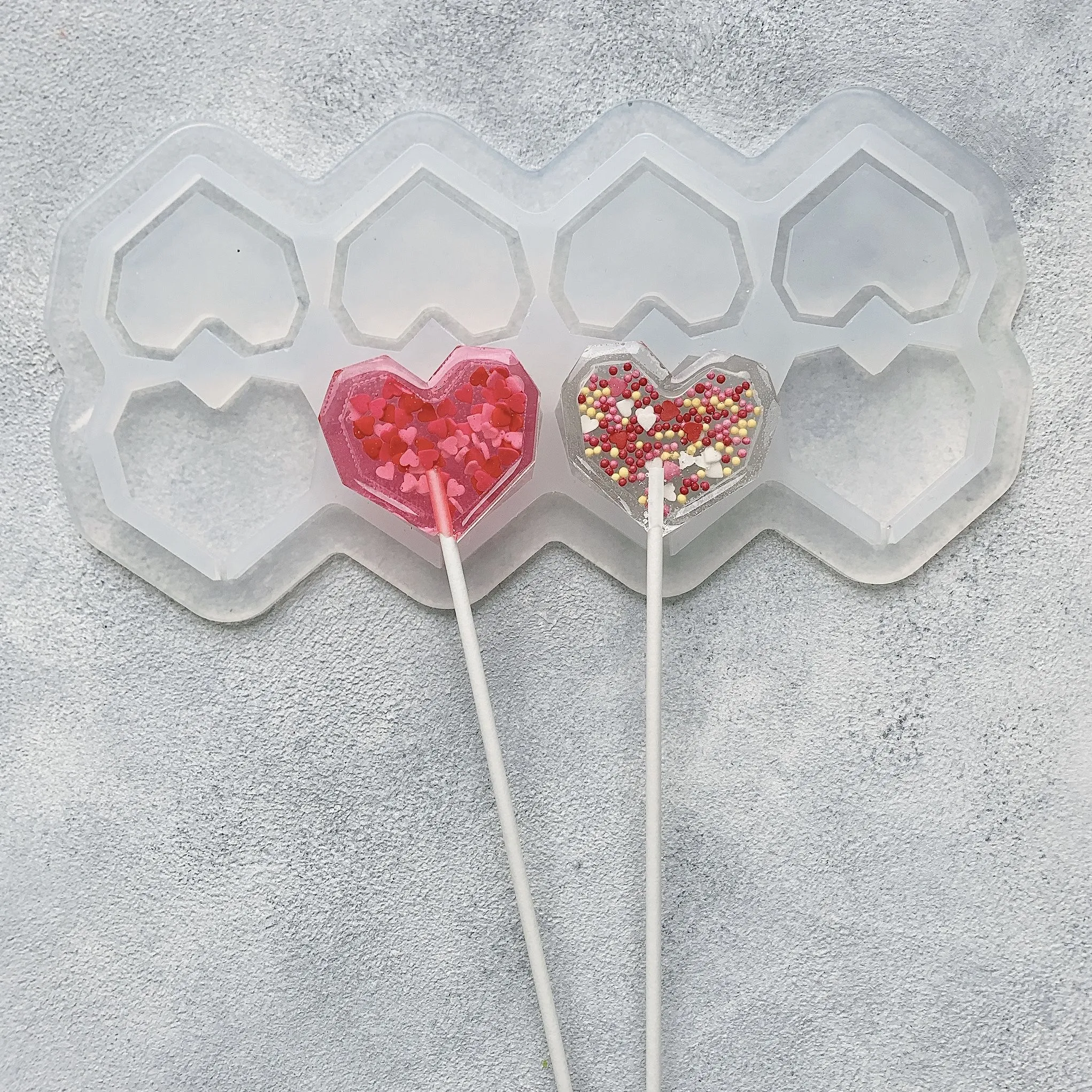 Силиконовая форма леденец-погремушка Сердечки 10 граней №276 5 см 8 шт