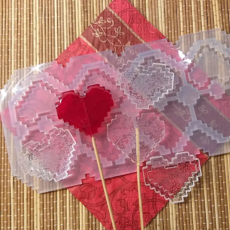Силиконовая форма леденец-погремушка Сердечки-пиксели №277 5 см 8 шт