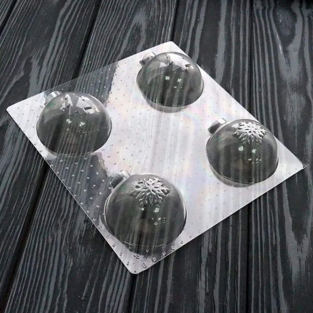 Форма для шоколада "НОВОГОДНИЕ ШАРЫ СНЕЖИНКА/ЕЛКА", (пластик) 4 ячейки