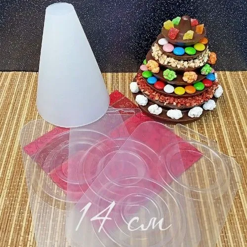 Высота елочки 14 см, диаметр 12 см Вес из шоколада ~300 грамм. Комбинированная форма силикон + ПЭТ пластик. Материал: Сертифицированный силикон