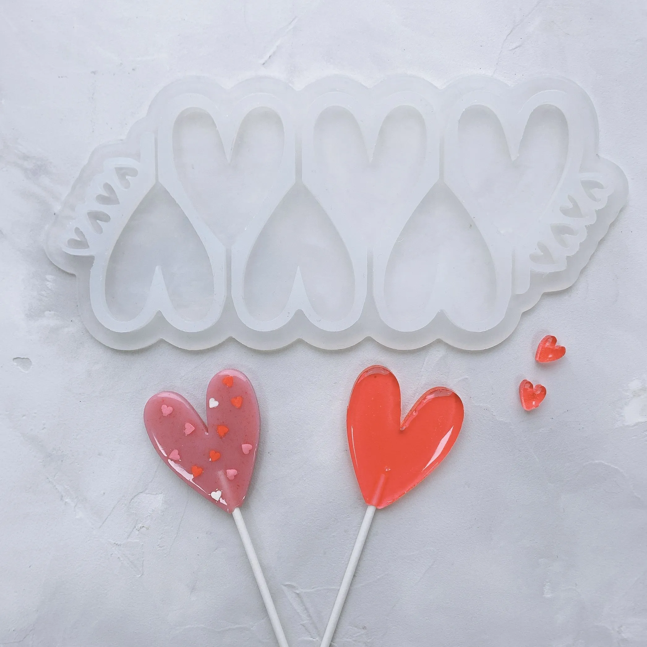 Сердце 6 х 4,7 см, толщина 6 мм, маленькое сердце 1,3 х 1 см. Вес из изомальта 100 грамм (Всех изделий в форме)