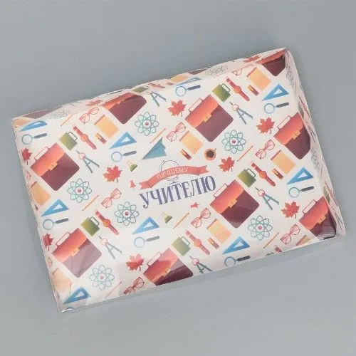 Коробка для кондитерских изделий с пластиковой крышкой "Лучшему учителю!", 22х15х3 см