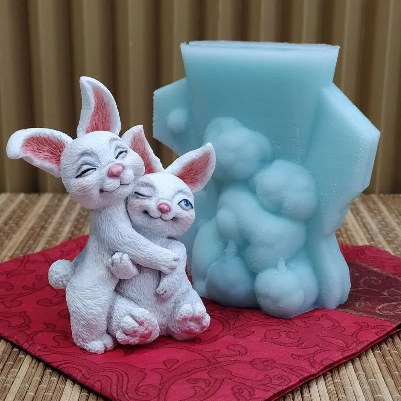 Силиконовая форма молд №1788 "Зайчики обнимаются"