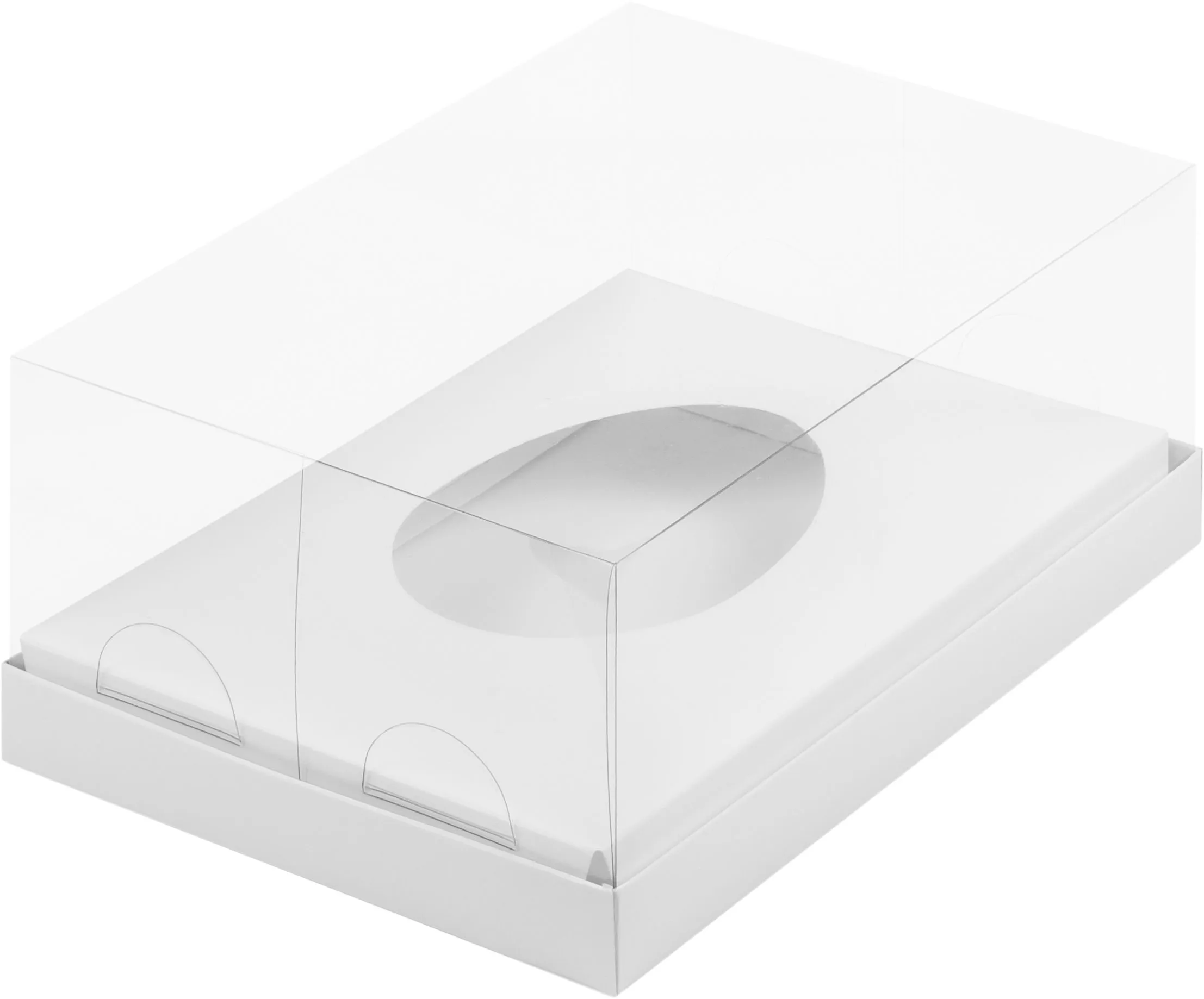 Коробка под половинку шоколадного яйца белая с пластиковой крышкой 23,5х16х10 см