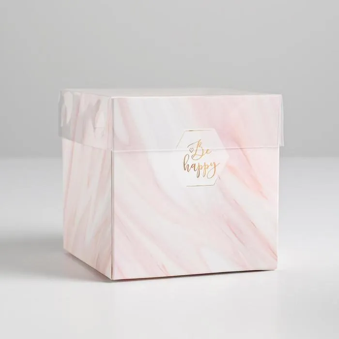 Коробка для пряничного букета с пластиковой крышкой "Be happy", 12х12х12 см