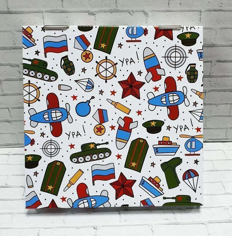 Коробка 23 февраля 20х20х3 см (микрогофрокартон) — купить выгодно с доставкой по Москве
