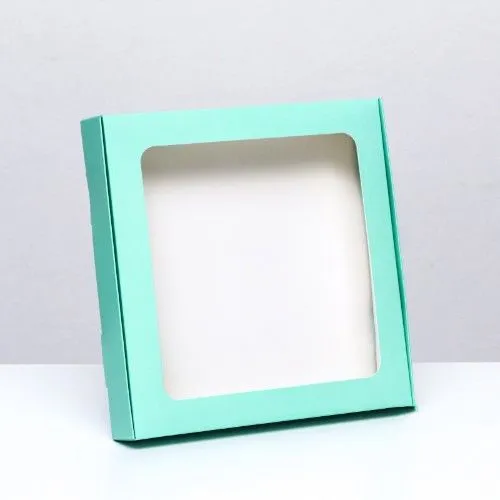 Купить Коробка для кондитерских изделий с окном Мятная, 19х19х3 см в Москве