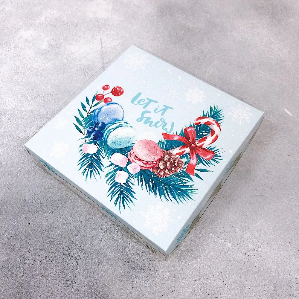 Коробка для пряников ажурная Морозное утро с пластиковой крышкой 13х13х3 см