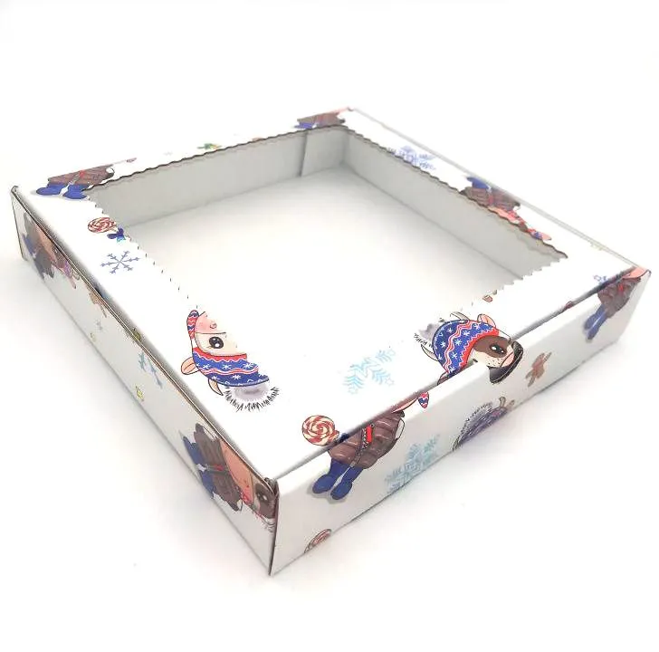 Коробка для пряников Новогодние Быки с окном 15х15х3 см гофрокартон