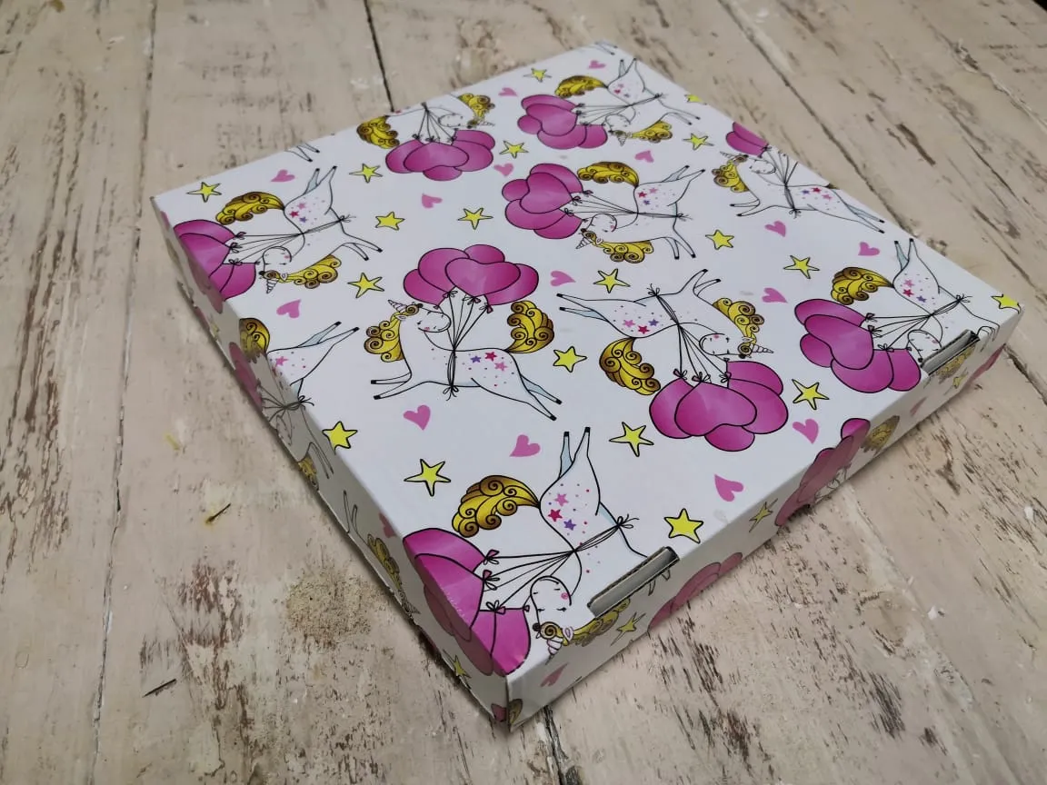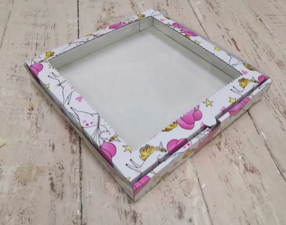 Коробка Мечты единорога с окном 15х15х3 см Микрогофрокартон