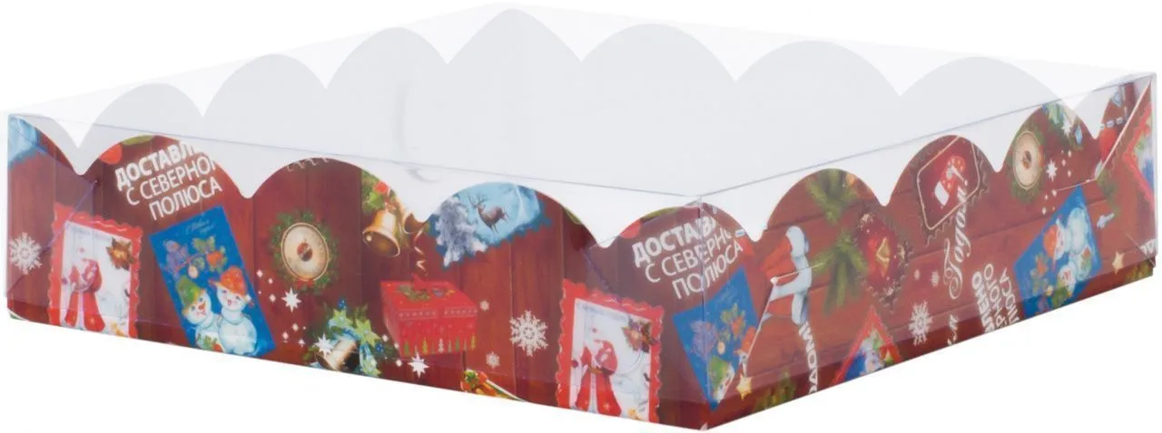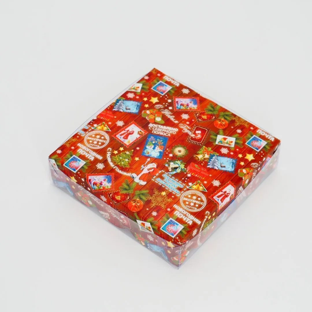 Коробка Новогодняя почта с пластиковой крышкой 12х12х3 см