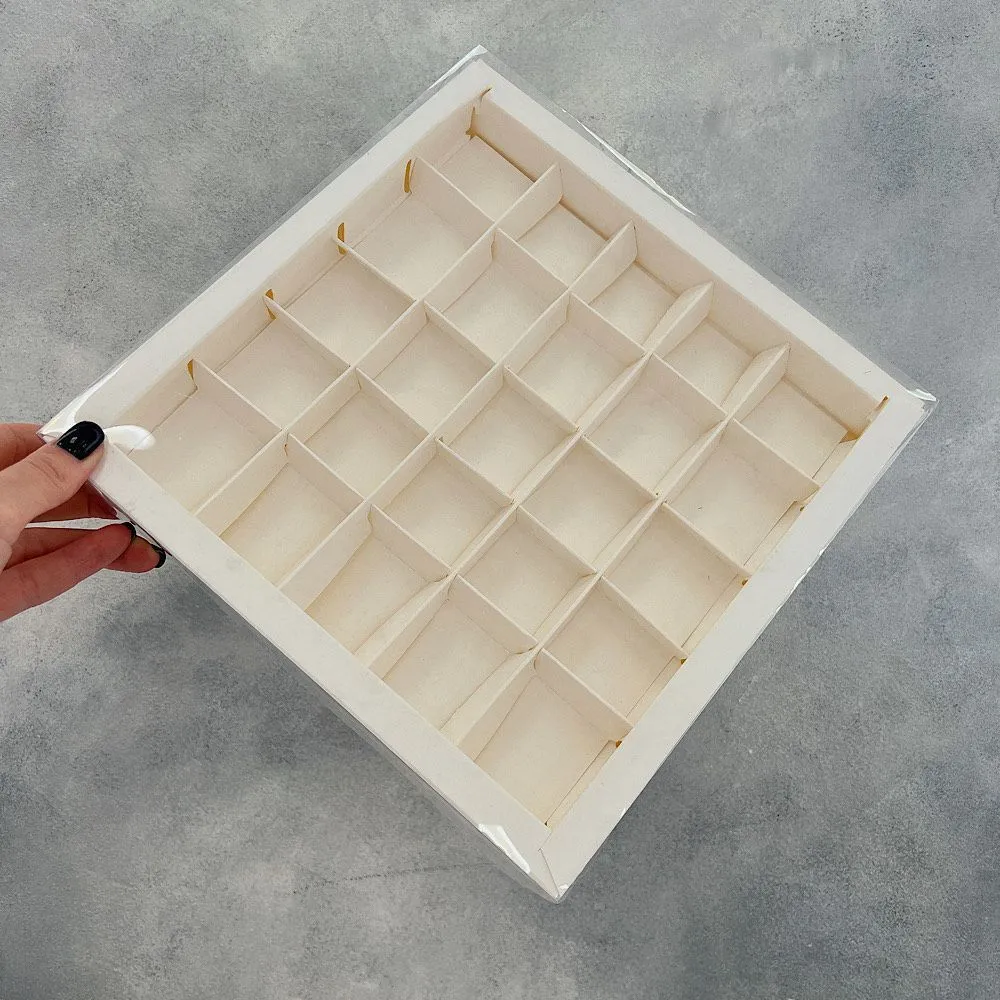 Коробка для 25 конфет Белая с пластиковой крышкой, 24,5х24,5х3 см