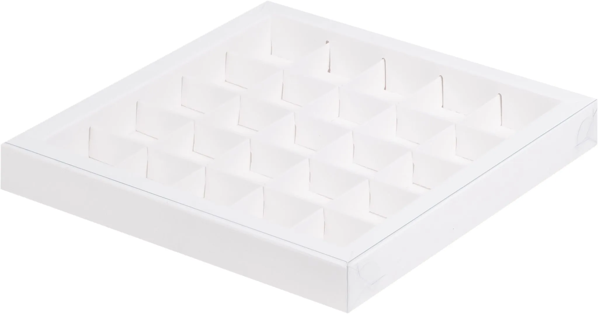 Коробка для 25 конфет Белая с пластиковой крышкой, 24,5х24,5х3 см