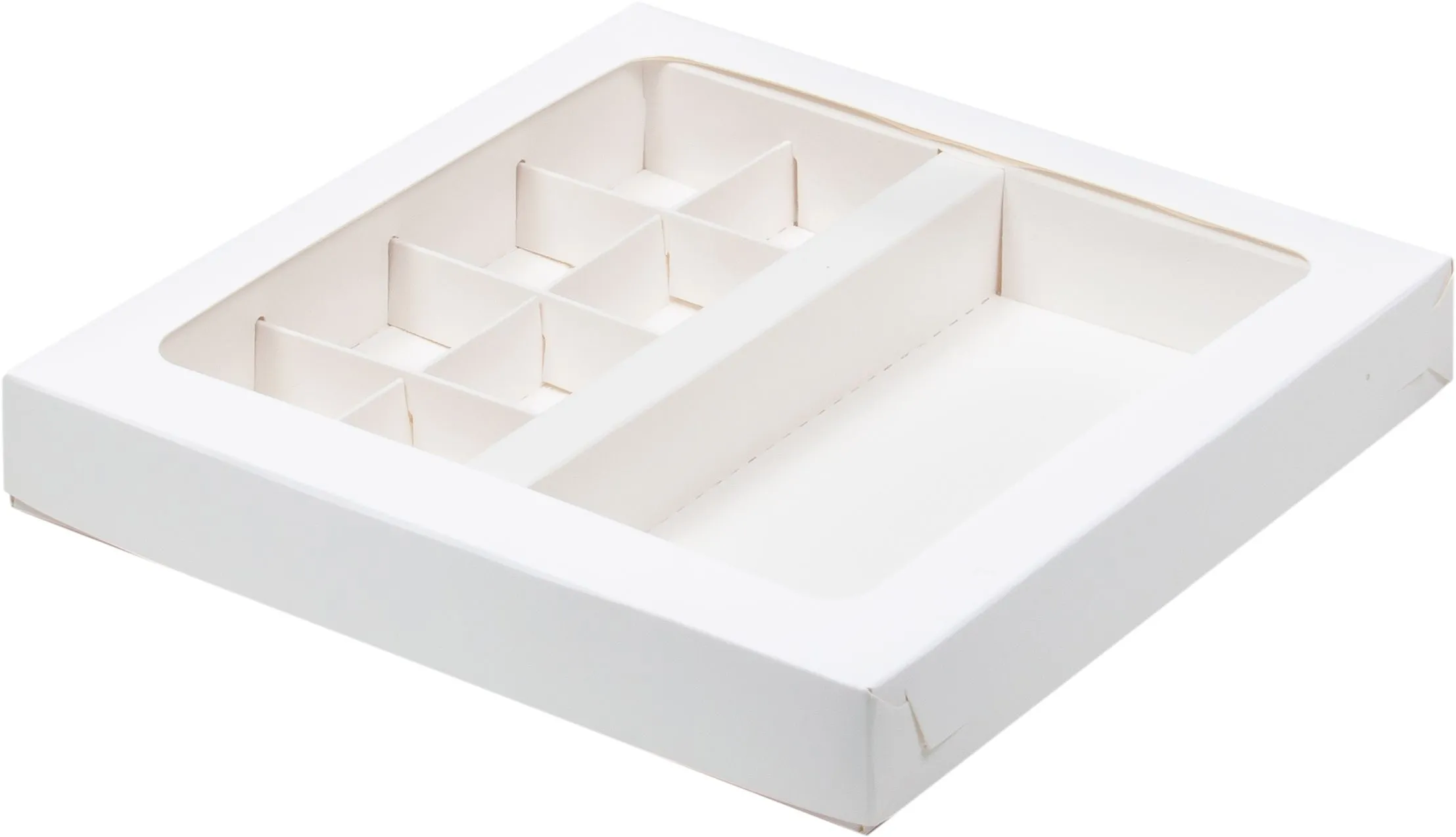 Купить Коробка для 8 конфет и шоколадной плитки с вклеенным окном белая в Москве