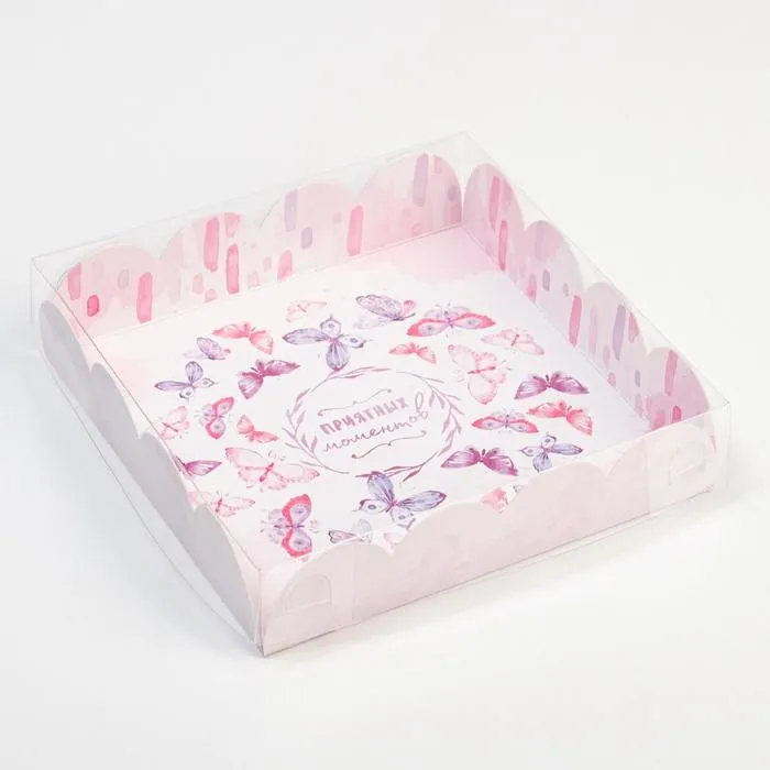 Коробка для кондитерских изделий с пластиковой крышкой "Приятных моментов", 13х13х3 см