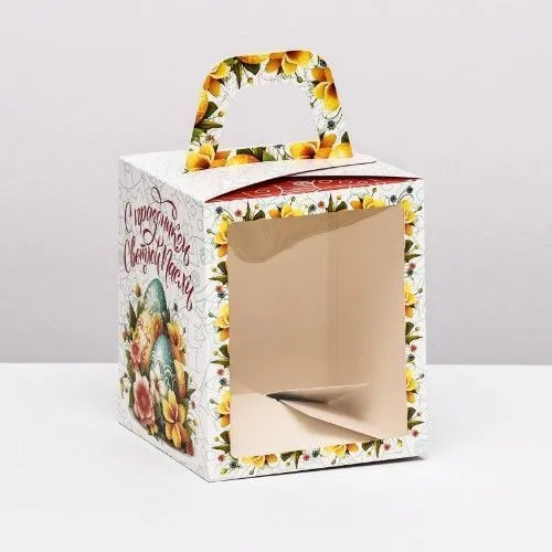 Купить Коробка для кулича с ручками и окном "Светлая Пасха", 15х15х18 см в Москве