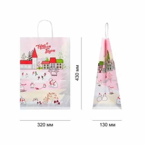 Крафт пакет «Новогодние мишки на прогулке» 10 шт (320х130х430 мм) — купить выгодно с доставкой по Москве