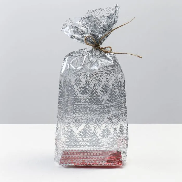 Пакет "Подарочный" с жёстким дном "Новогодняя вязка", 7х11х40