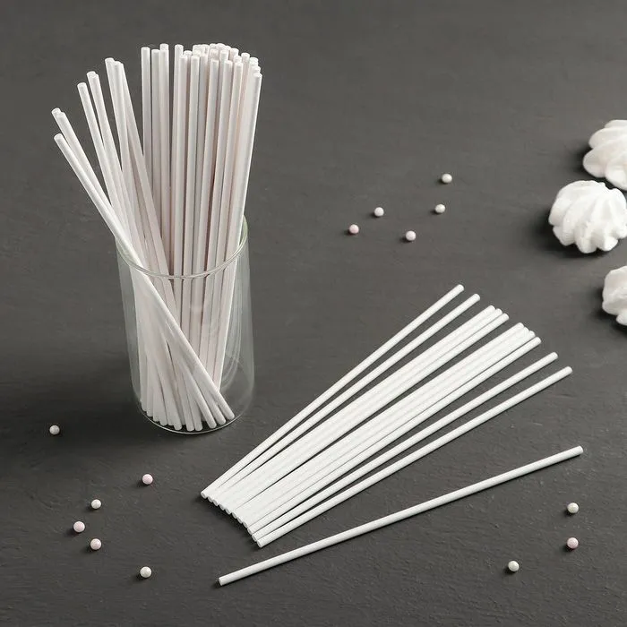 Палочки для кейкпопсов бумажные Белые, 20 см, 50 шт