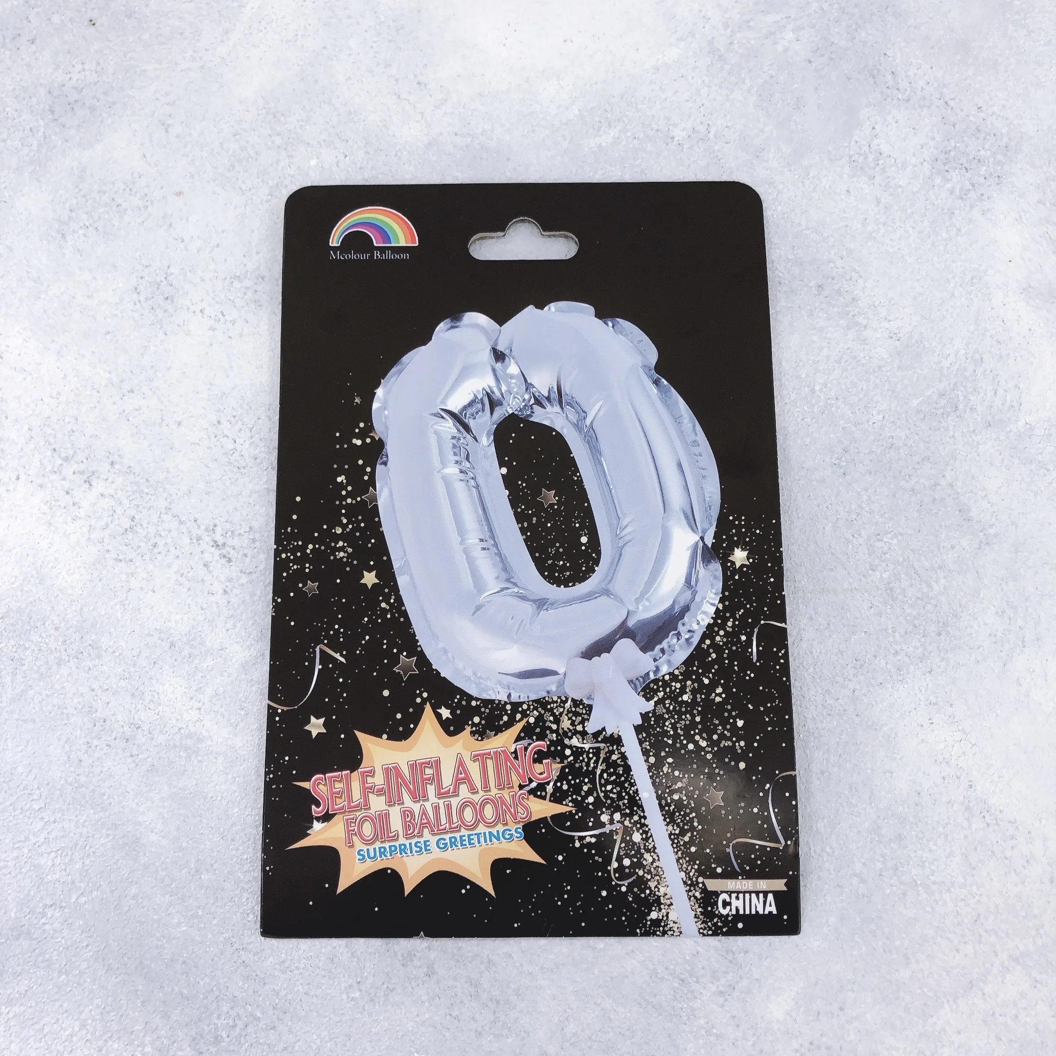 Шар топпер самонадувающийся Цифра 0 с палочкой для торта Серебро