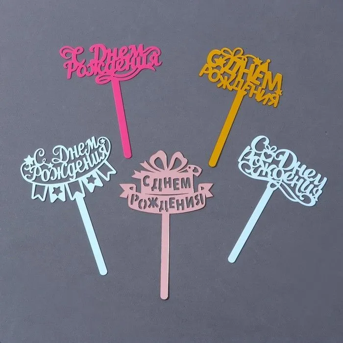 Купить Топпер акрил «С Днём Рождения», МИКС, 13 см в Москве